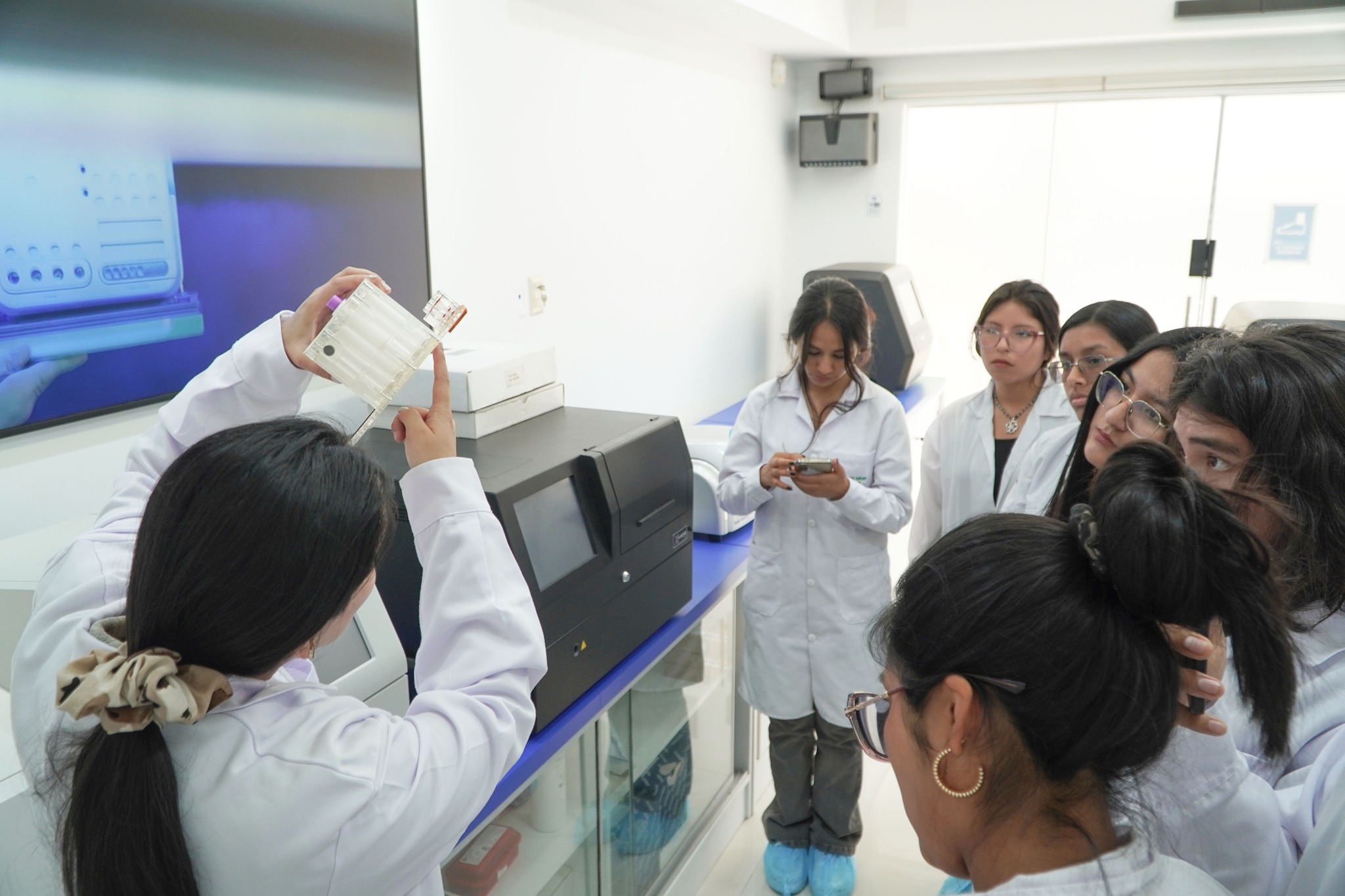 Durante el recorrido, los alumnos conocieron el showroom y las zonas de biología molecular, secuenciación y microbiología, donde exploraron de cerca los flujos de trabajo que respaldan el diagnóstico y la investigación que desarrollamos en el país.